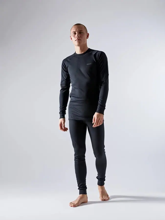 Functional baselayer jersey and pants made of soft recycled, channel-knit fabric designed for all kinds of winter activities. Flatlock seams that follow body movements.